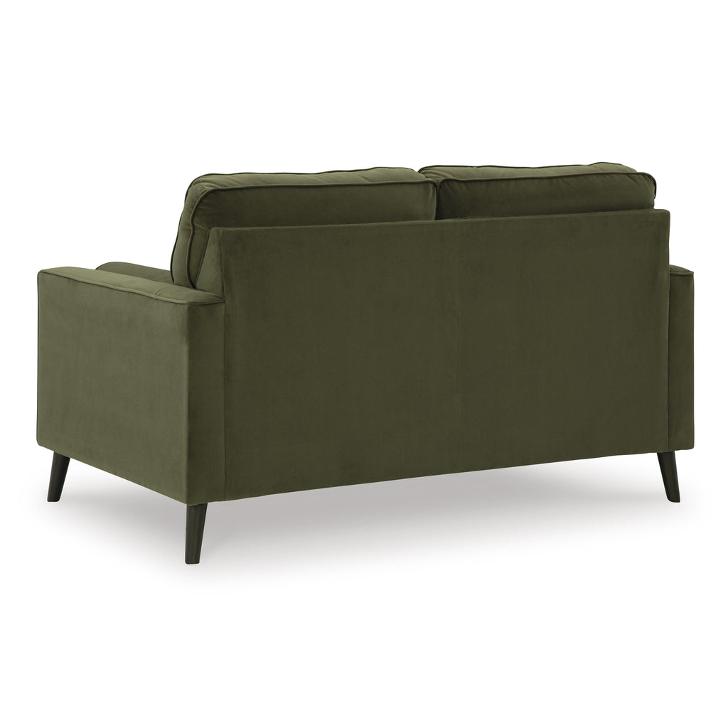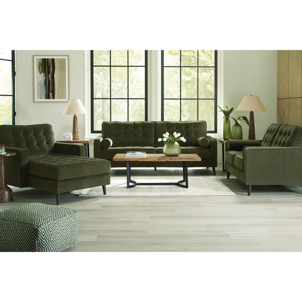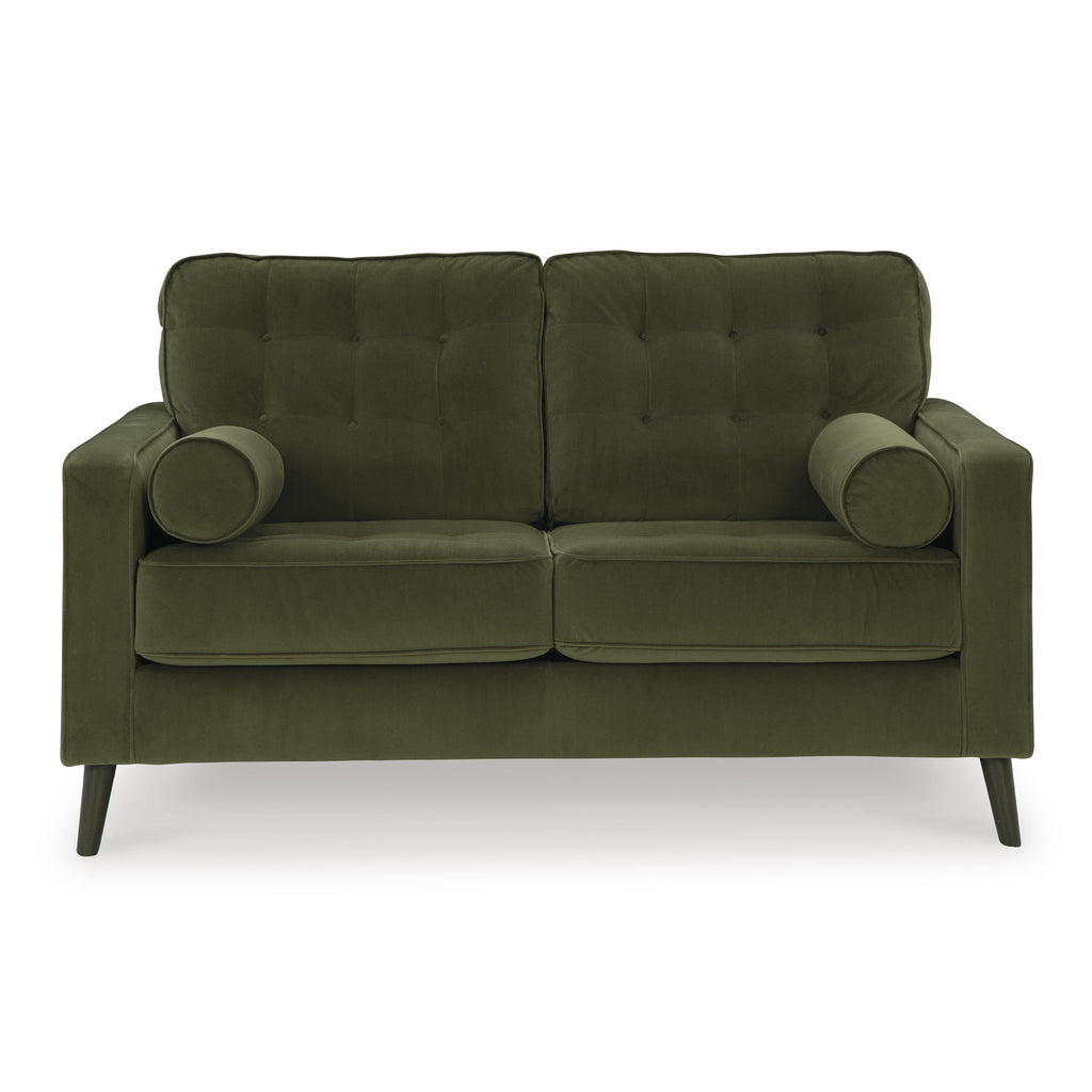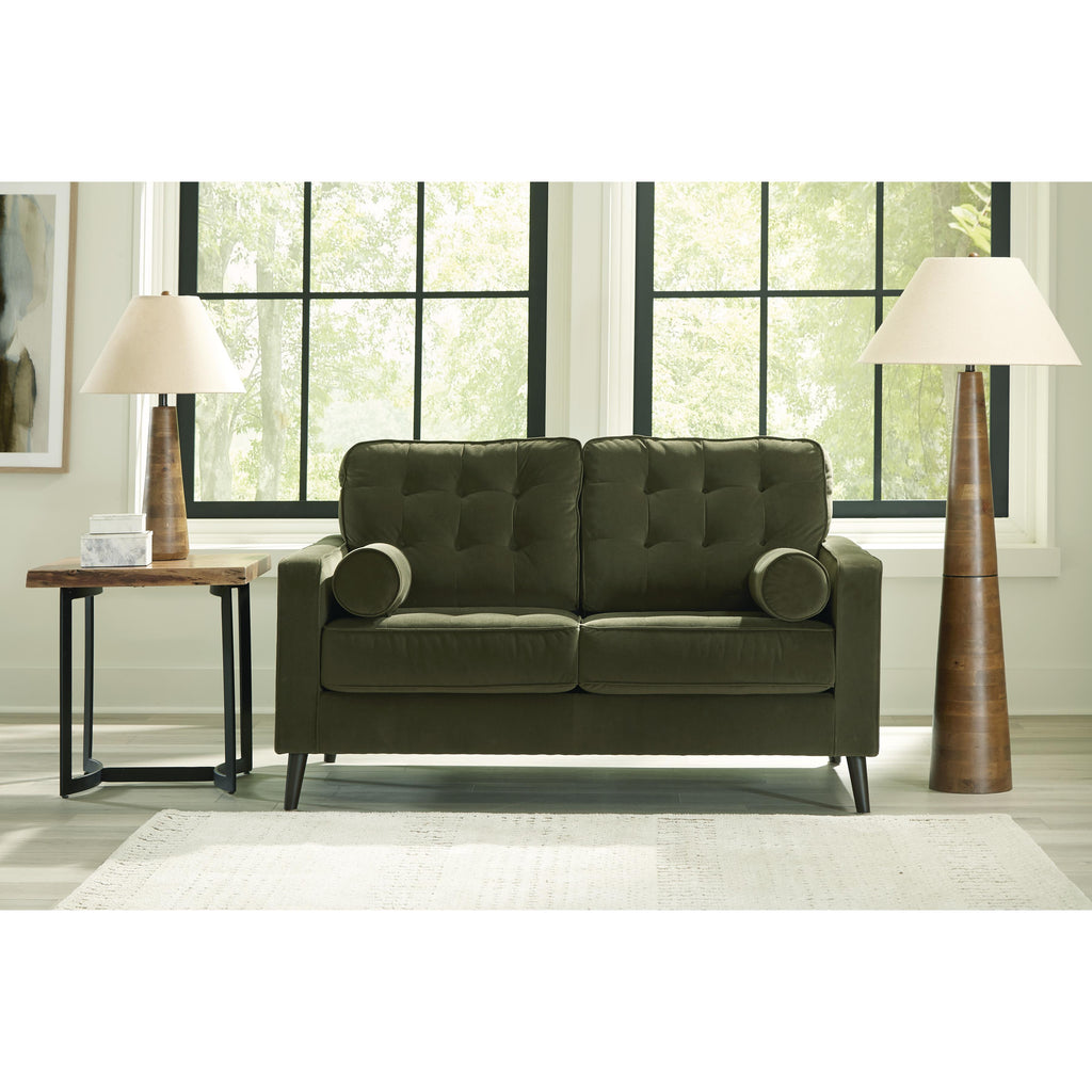• Loose seat and attached back cushions with button tufting