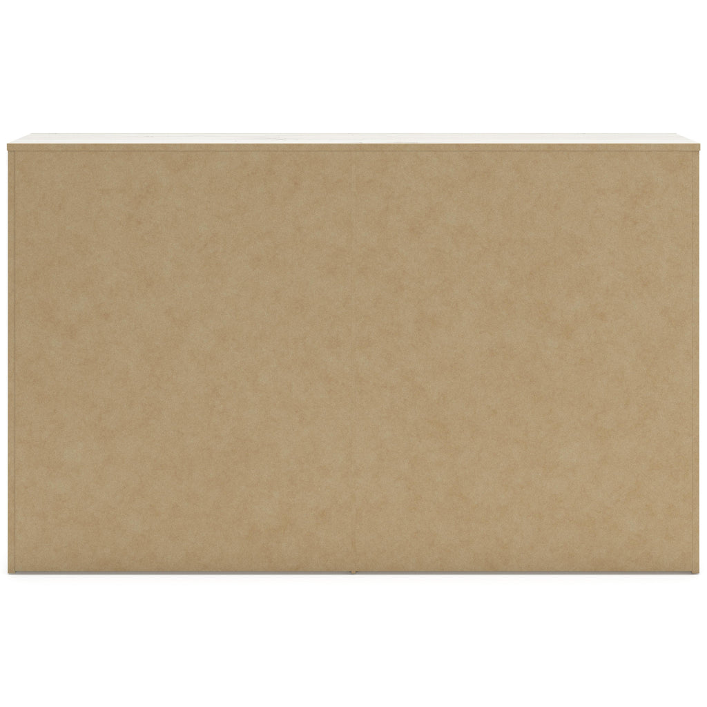 • Drawer interiors are lined with a faux linen laminate for a clean, finished look