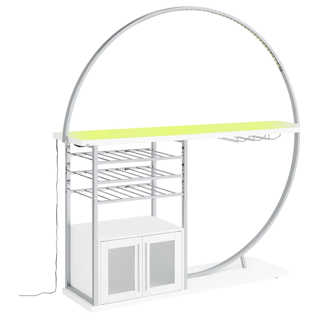 • Contemporary home bar with customizable LED lighting featuring 8 color options