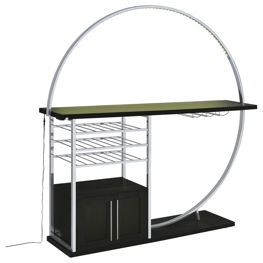 • Contemporary home bar with customizable LED lighting featuring 8 color options