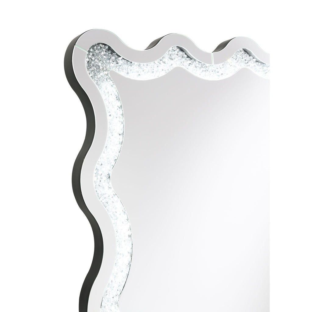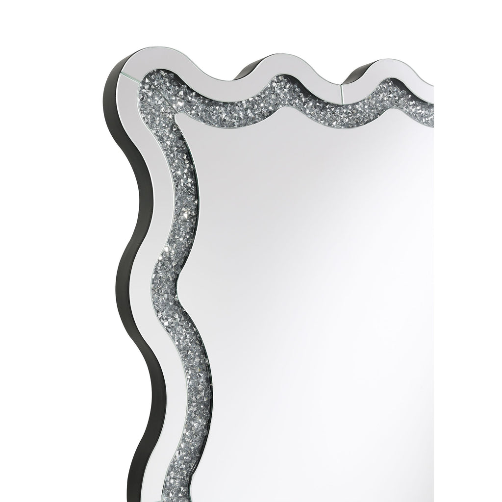 • A wavy frame silhouette adds movement and elegance to a flat, non-beveled glass mirror