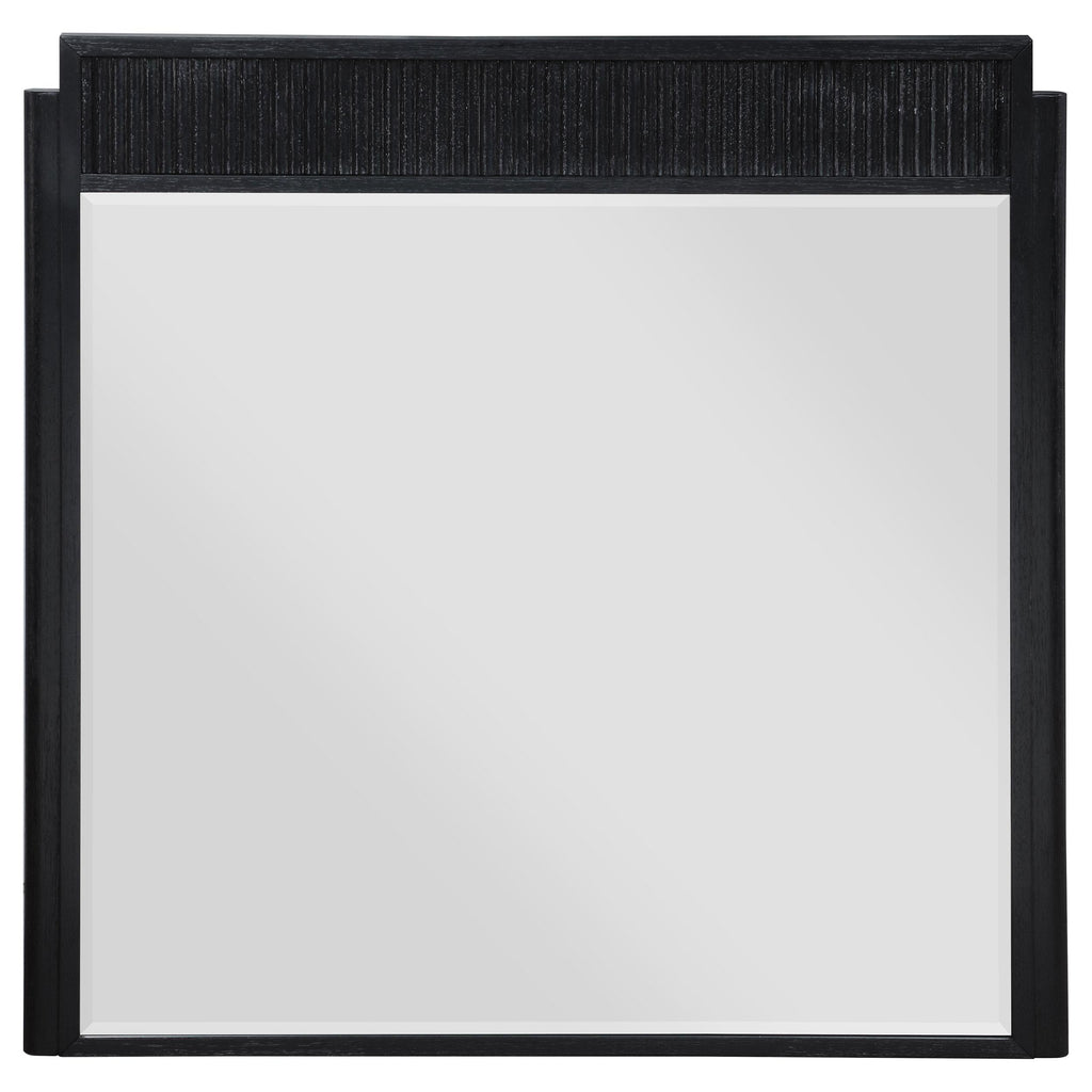 • Fluted textured panel highlights the top of the mirror's frame to add texture and depth