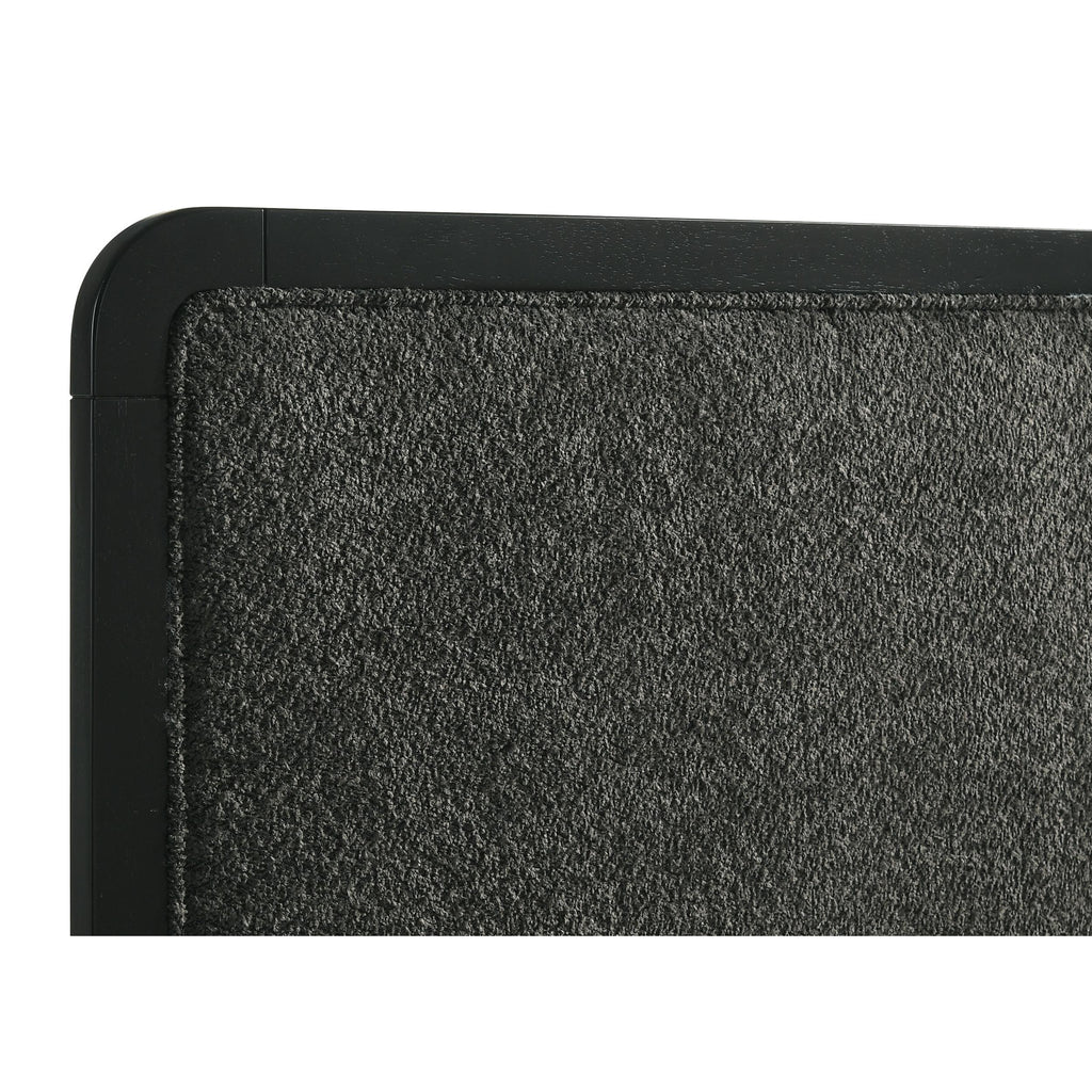 • Headboard is padded with foam and features charcoal upholstery with a soft, inviting look and feel