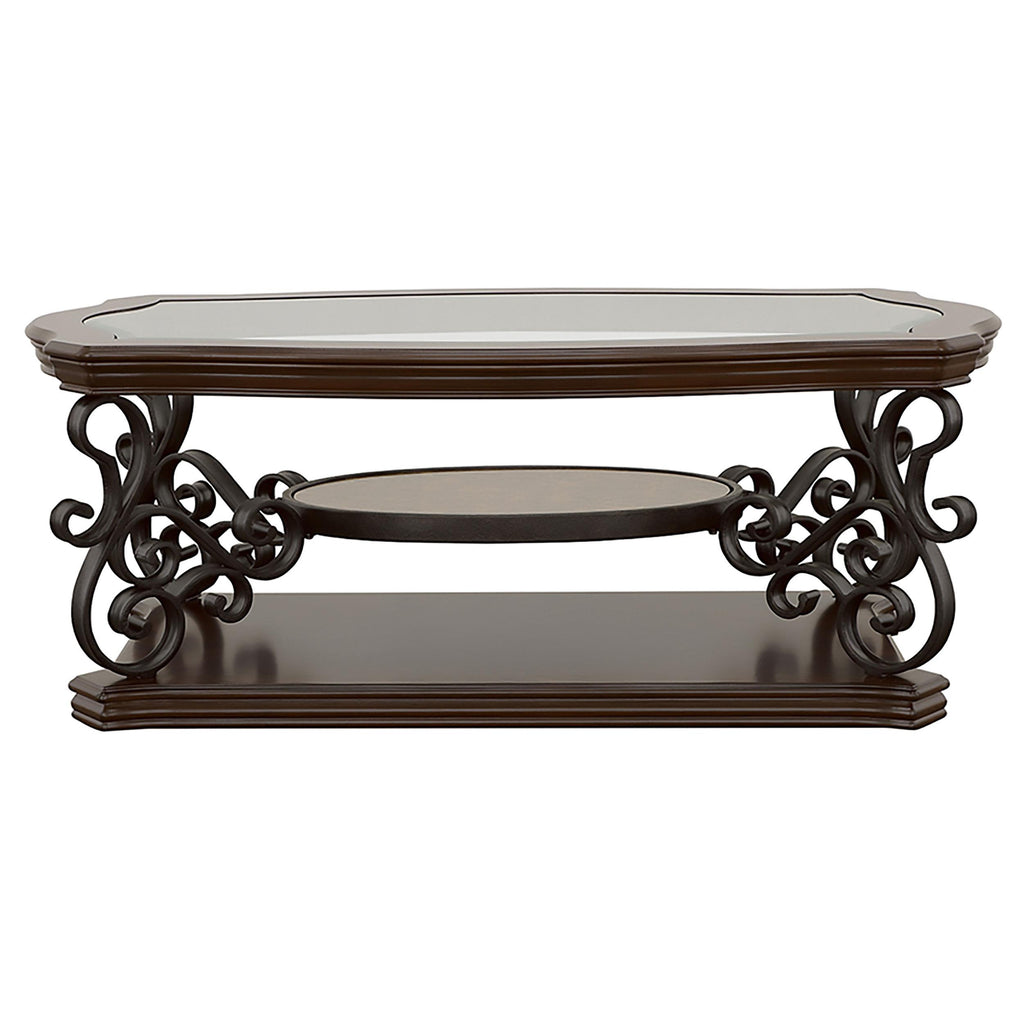 • Coffee table with a clear tempered glass top for a sleek and durable surface
