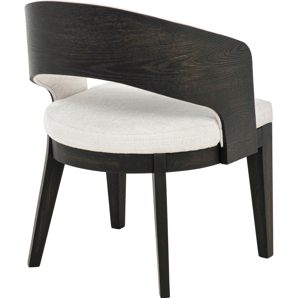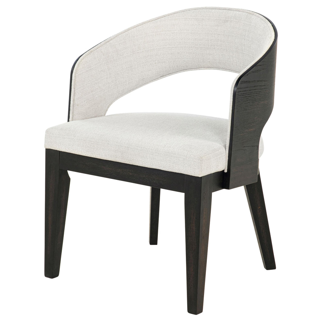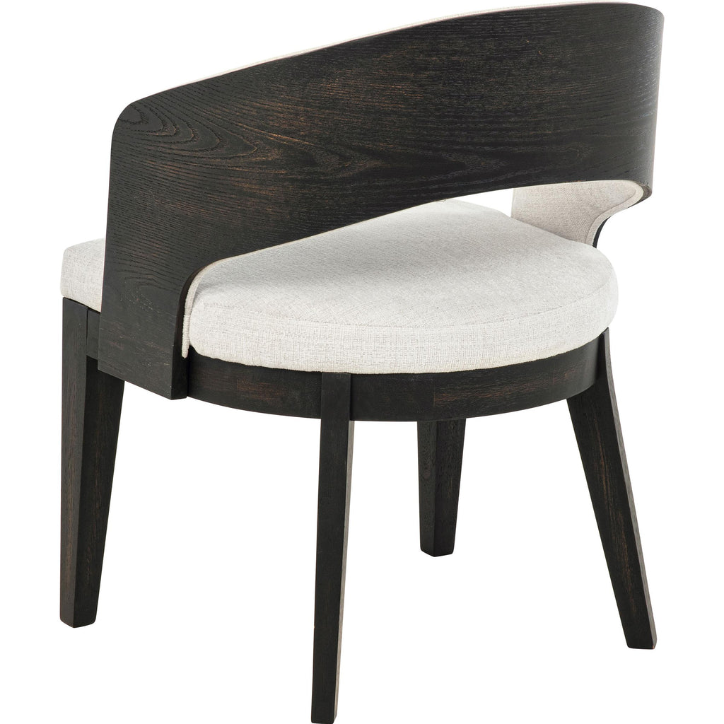 • Curved backrest hugs the form while creating a light, open-arm profile