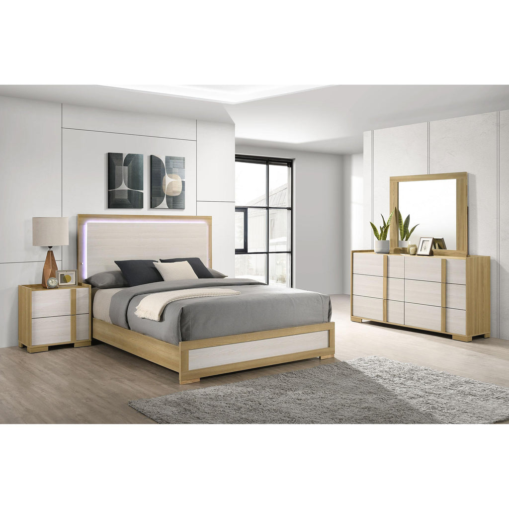 Coaster Furniture Hyland 215651Q Wood Queen LED Panel Bed - Natural and White