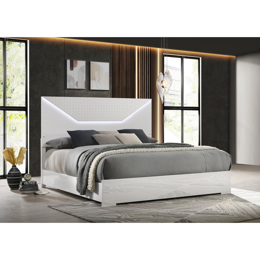 Coaster Furniture Ives 224941Q Queen Panel Bed LED Headboard - White High Gloss
