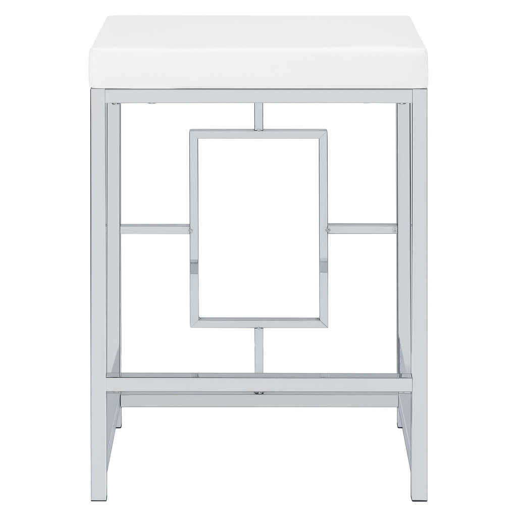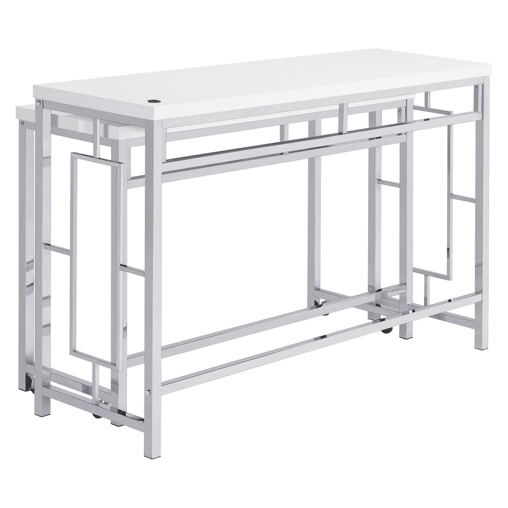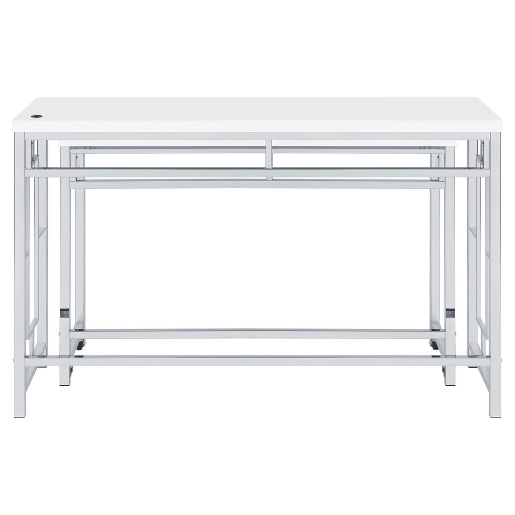 • Silver metal finish perfectly complemented with white tabletops and faux leather for a crisp look