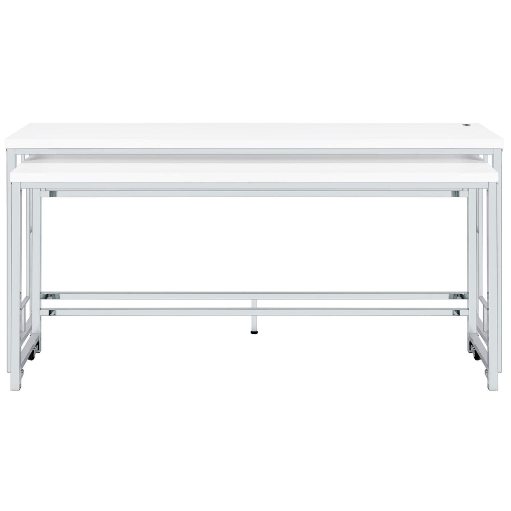 • Silver metal finish perfectly complemented with white tabletops and faux leather for a crisp look