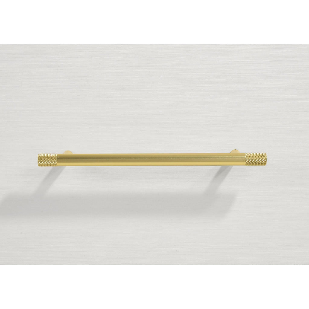 • Warm gleaming gold finish trim highlights the front of the case, long bar pulls and decorative legs