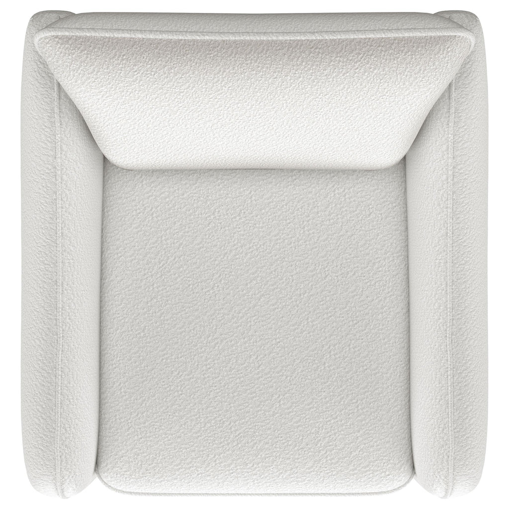 Nestled within the soft embrace of this bouclé upholstered chair, one finds a moment of tranquility. Its harmonious 360 swivel... Nestled within the soft embrace of this bouclé upholstered chair, one finds a moment of tranquility. Its harmonious 360 swivel and glider functionality make each movement a fluid dance, a gentle invitation to unwind. The meticulously shaped arms, a testament to refined style, offer a restful perch for weary elbows. As the day's light fades, this chair becomes a cherished haven, its silhouette a blend of comfort and contemporary charm. In this cozy nook, time slows, and serenity takes a seat. View more