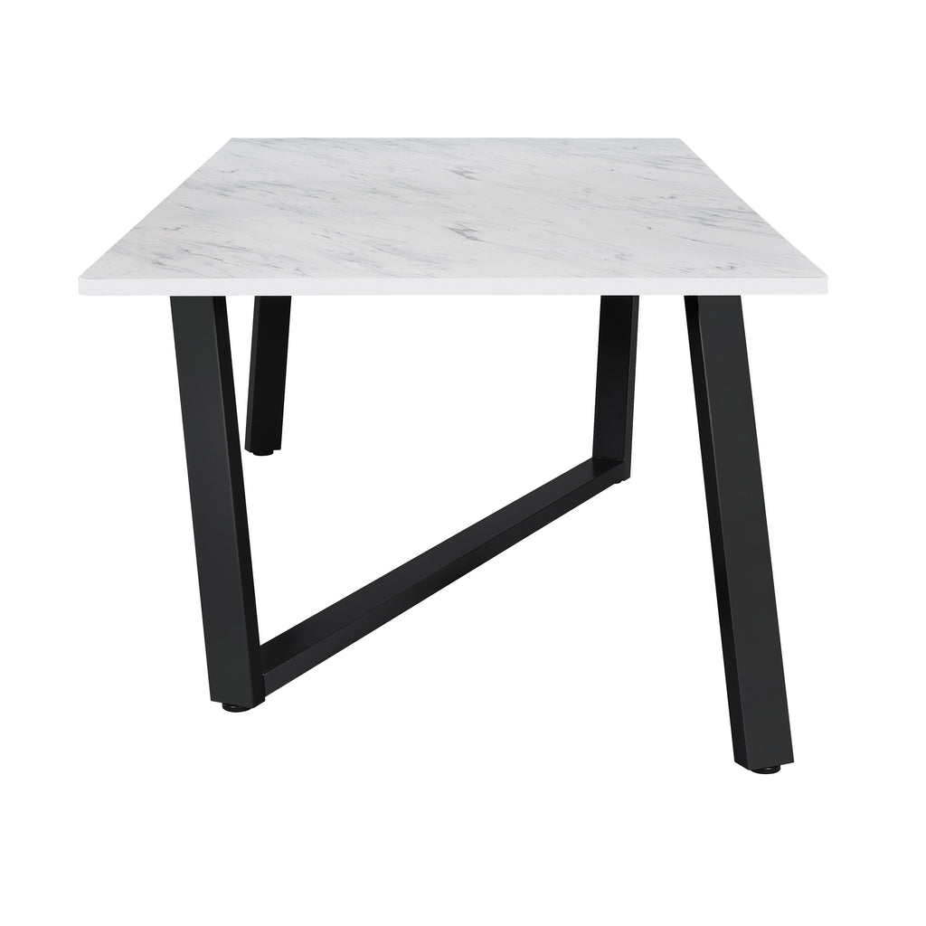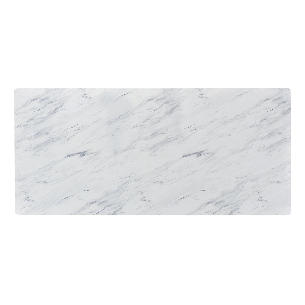 • Table has a faux white marble paper with polyurethane sealer and a gunmetal powder coated metal base