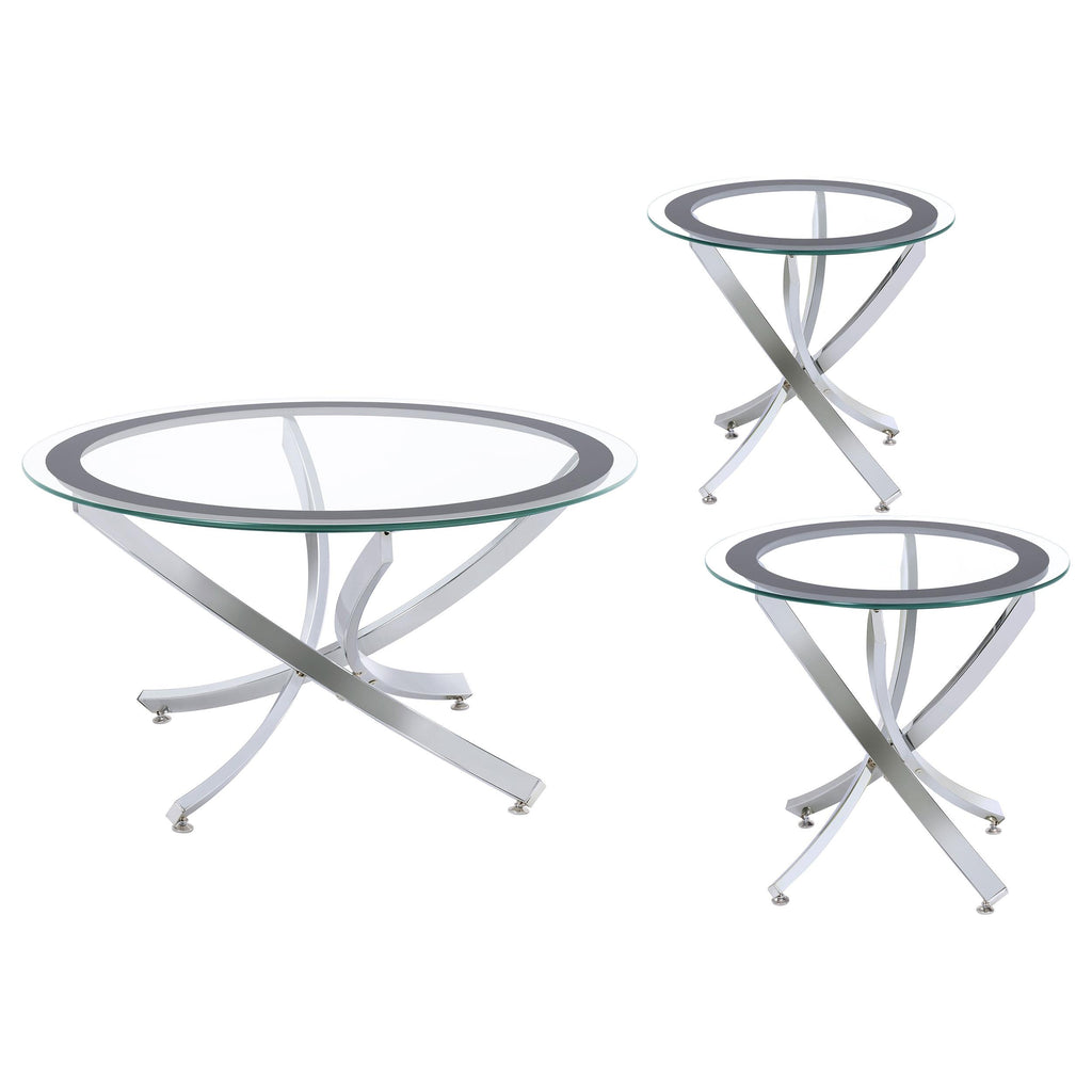 Coaster Furniture Brooke 702588-SET 3-piece Round Glass Top Coffee Table Set - Chrome