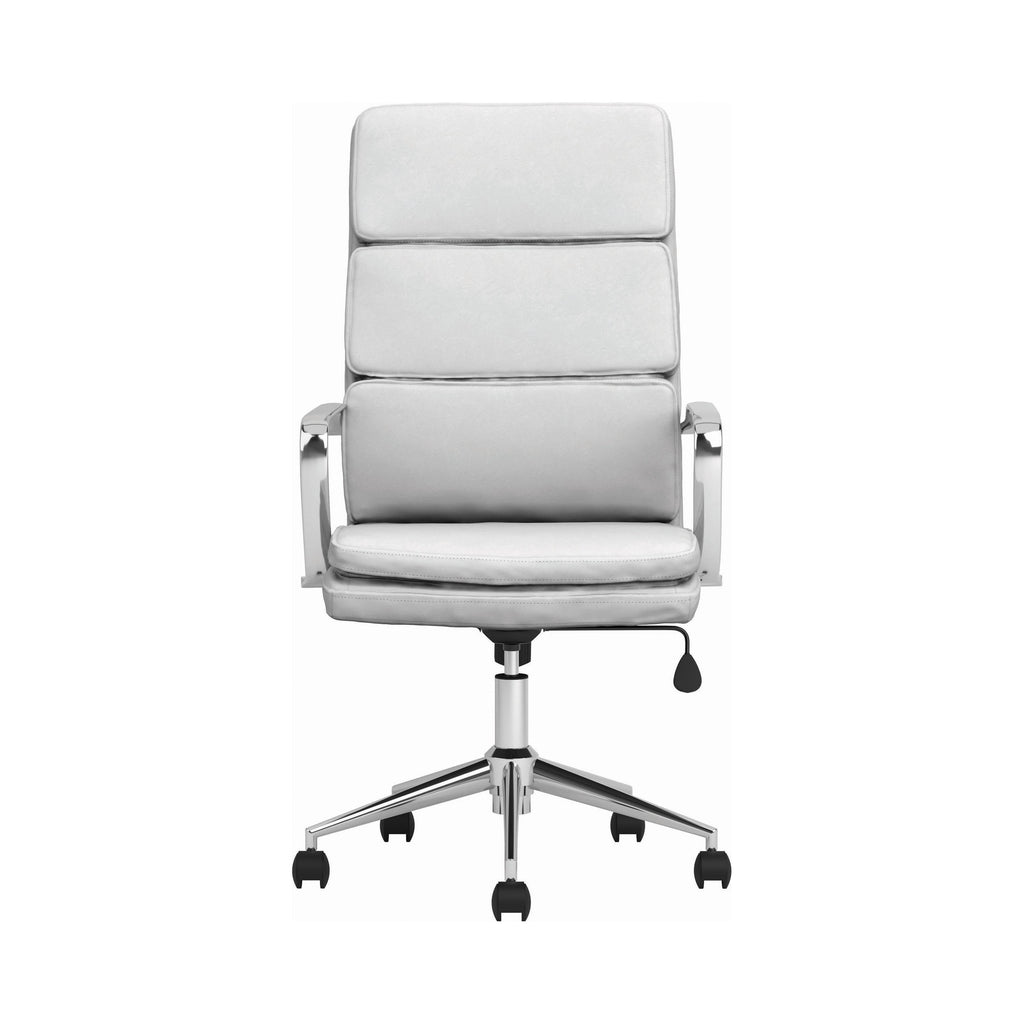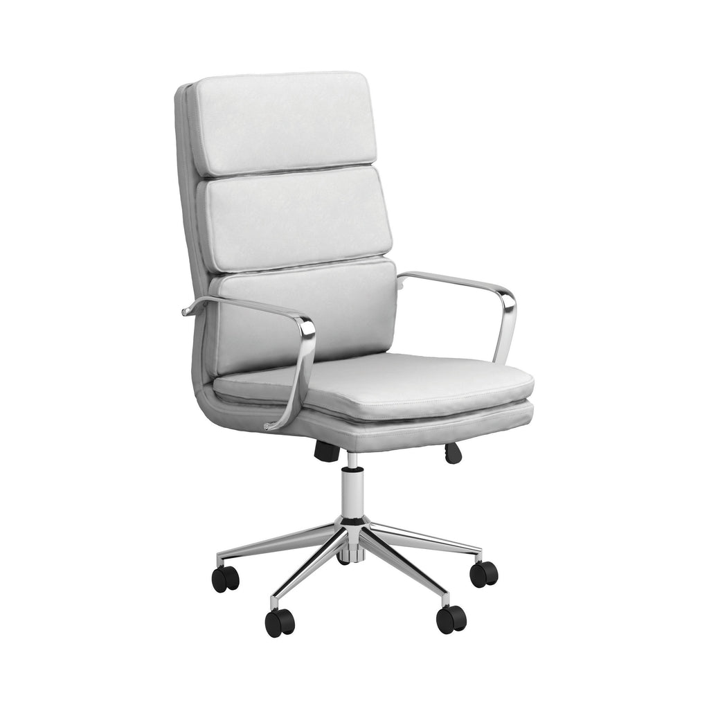 • Update your workspace with this modern office chair featuring a chrome finish on the base and contoured arms, horizontal stitching on the seat back, ergonomically contoured back for ideal support and comfort, armrests for added stability, and height-adjustability with casters for easy mobility