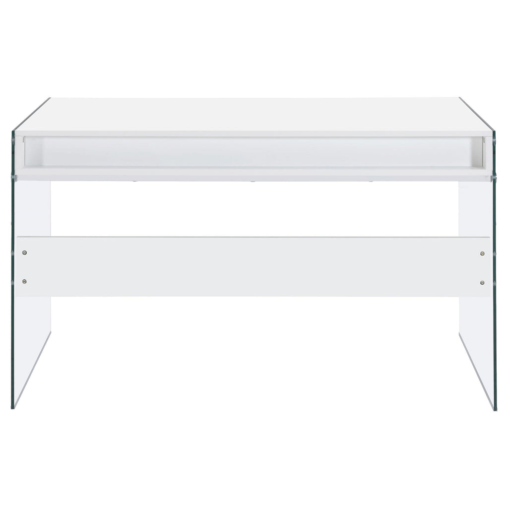 • Modern writing desk conveys strength and elegance with clear tempered glass side panels