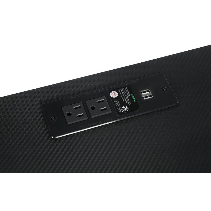 • Features a water and stain-resistant carbon fiber textured PVC desk top