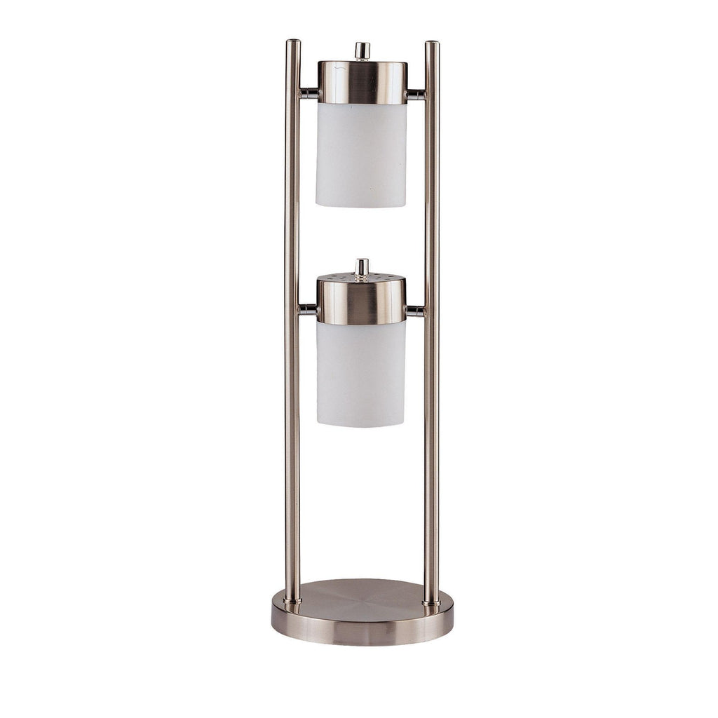• Two lamps with horizontal adjustable swivel direct light on a double H frame
