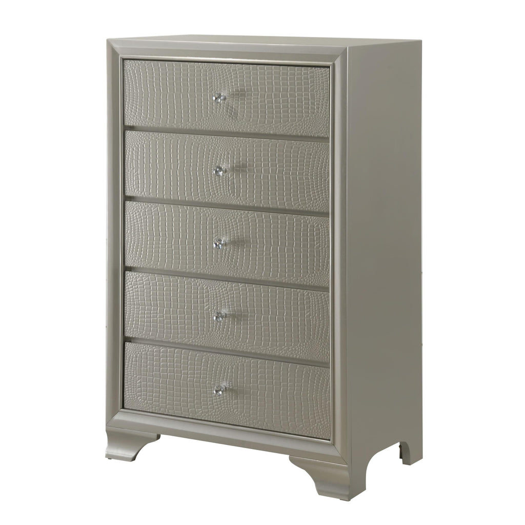 • Modern champagne faux finish with embossed crocodile pattern