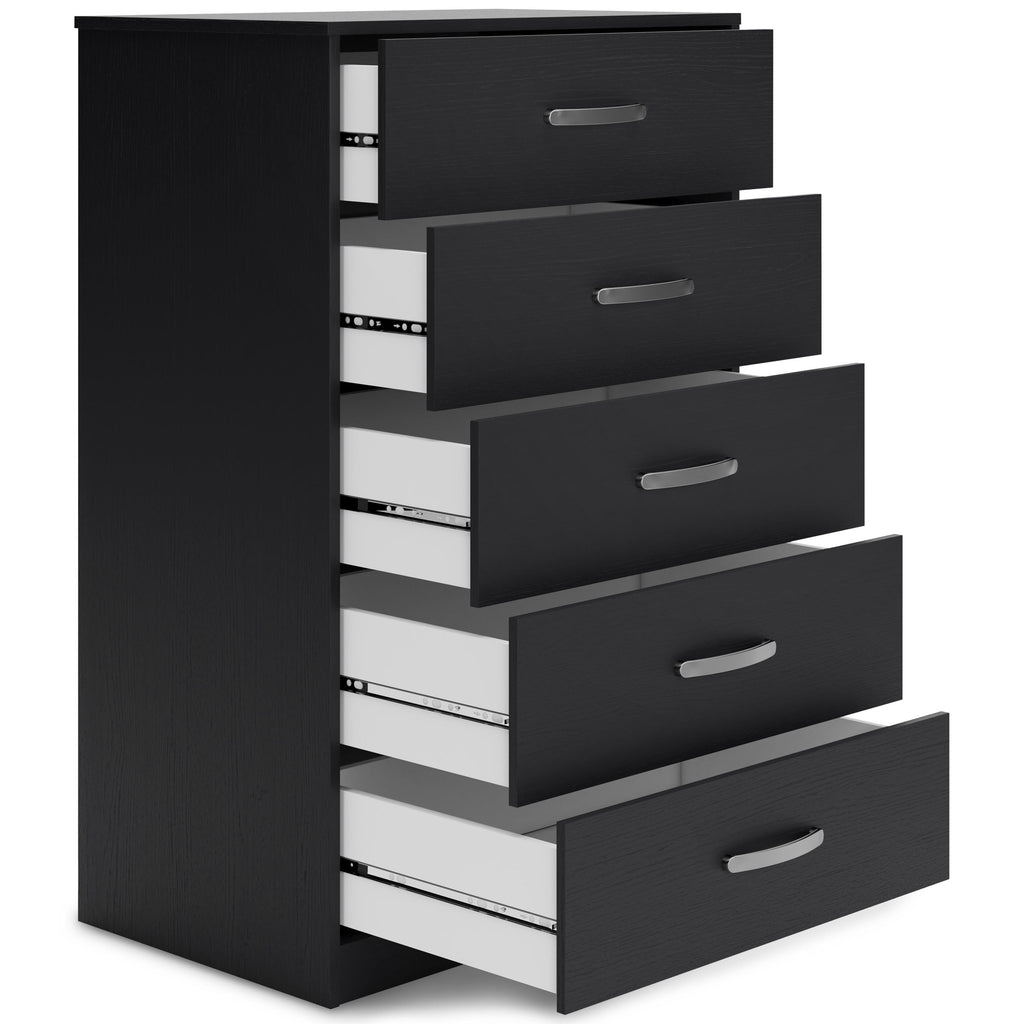• 5 smooth-gliding drawers with ball-bearing construction and vinyl-wrapped sides and back