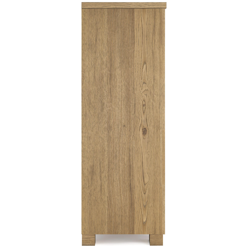 • Glazed natural light oak color finish enhances the natural characteristics of the veneer