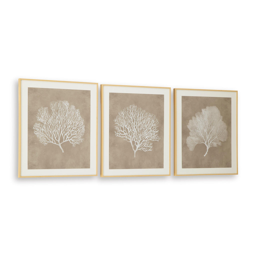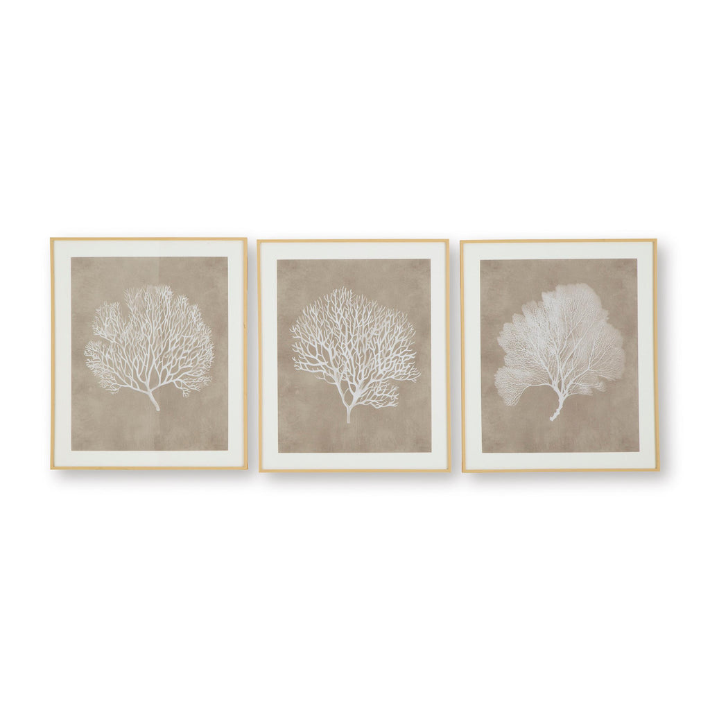 Bring a casual coastal element to your space with this wall art. The beautiful three-piece set showcases delicate coral in... Bring a casual coastal element to your space with this wall art. The beautiful three-piece set showcases delicate coral in soft, muted tones, creating a serene and calming ambience. Framed and ready to hang, these prints are just the thing for those seeking a subtle yet stylish accent for their walls. View more
