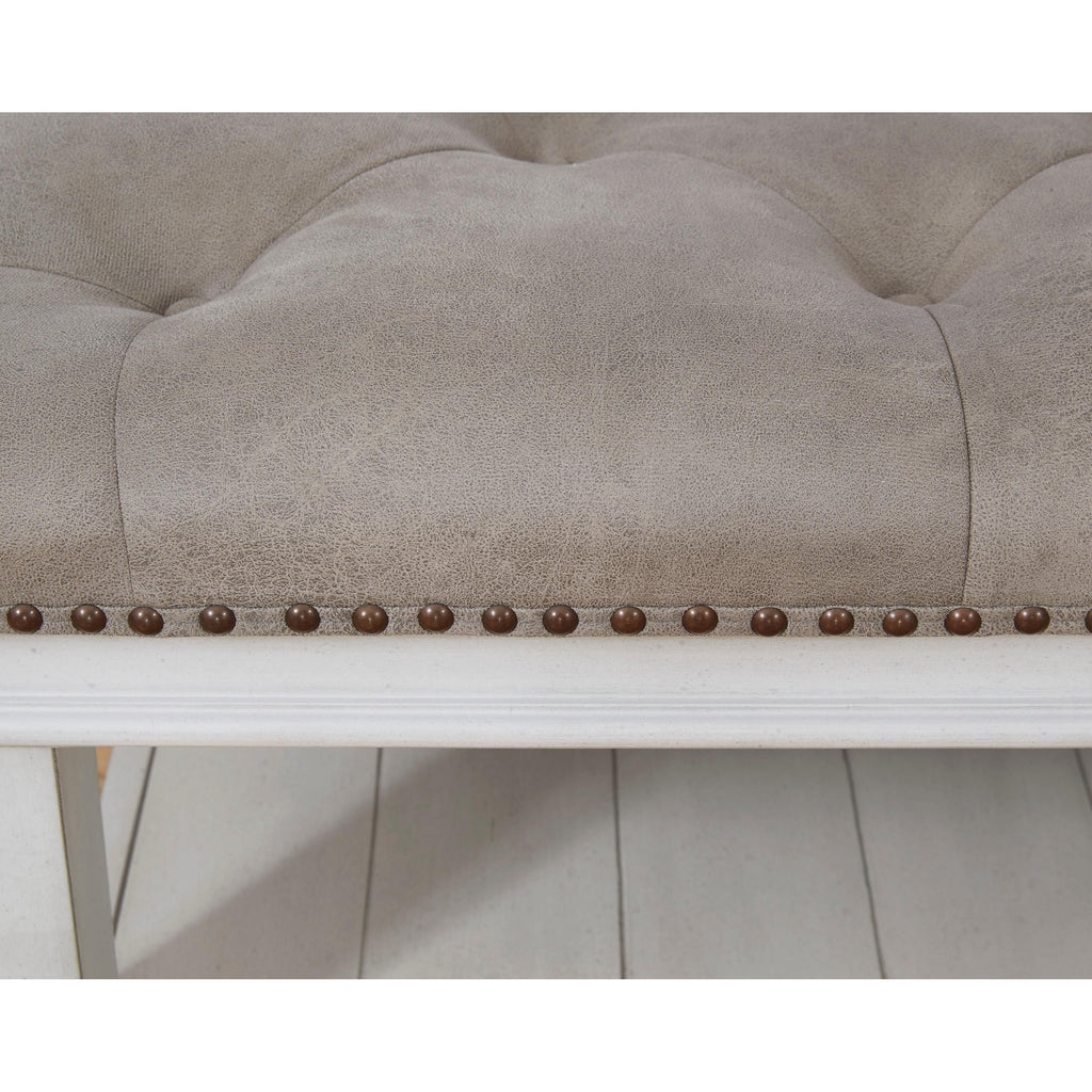 Ideal as a footrest or coffee table stand-in, this ottoman coffee table adds an all-purpose farmhouse touch to your living... Ideal as a footrest or coffee table stand-in, this ottoman coffee table adds an all-purpose farmhouse touch to your living space. Crafted with comfort and convenience in mind, this square ottoman features a faux leather button tufted seat with nailhead accents. Enhancing its casual appeal, a handy lower shelf houses throws, reading material and other essentials. View more