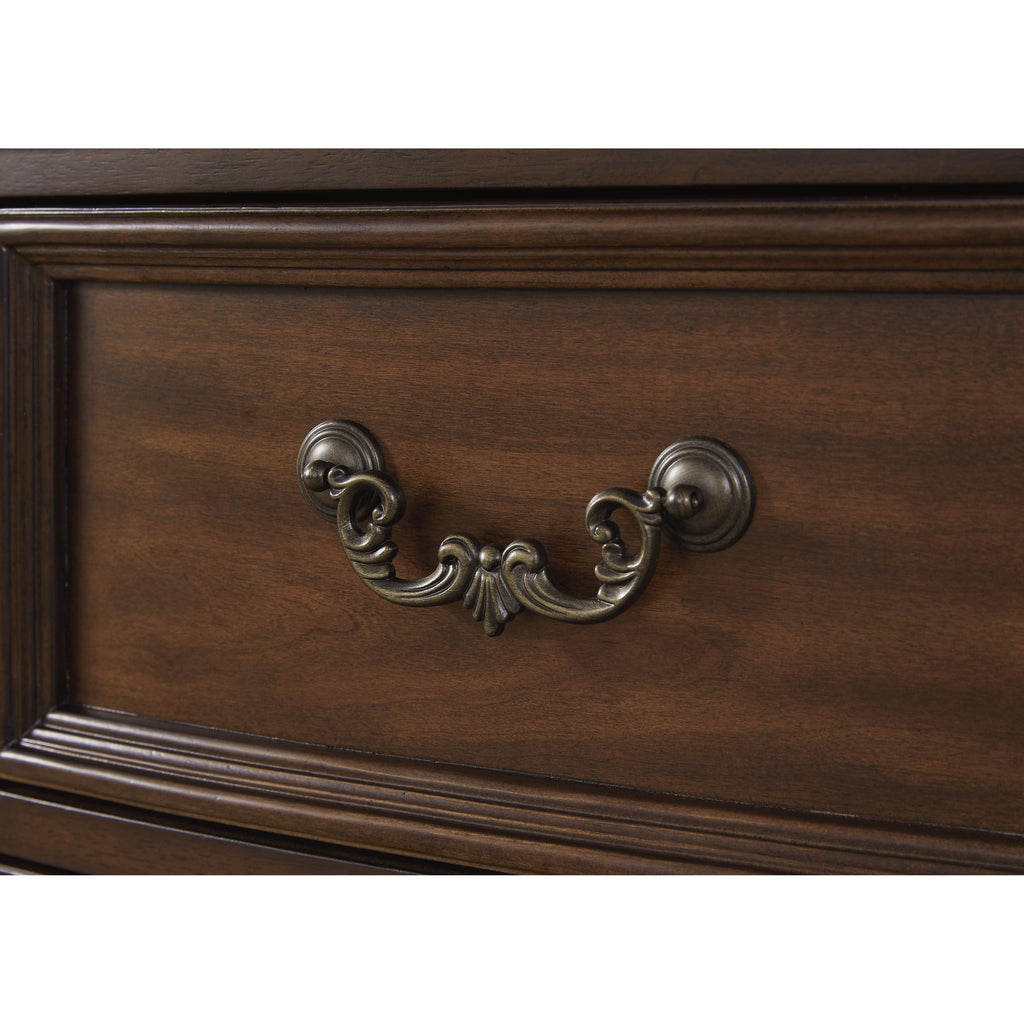 • Decorative metal drawer pulls with dark bronze-tone finish