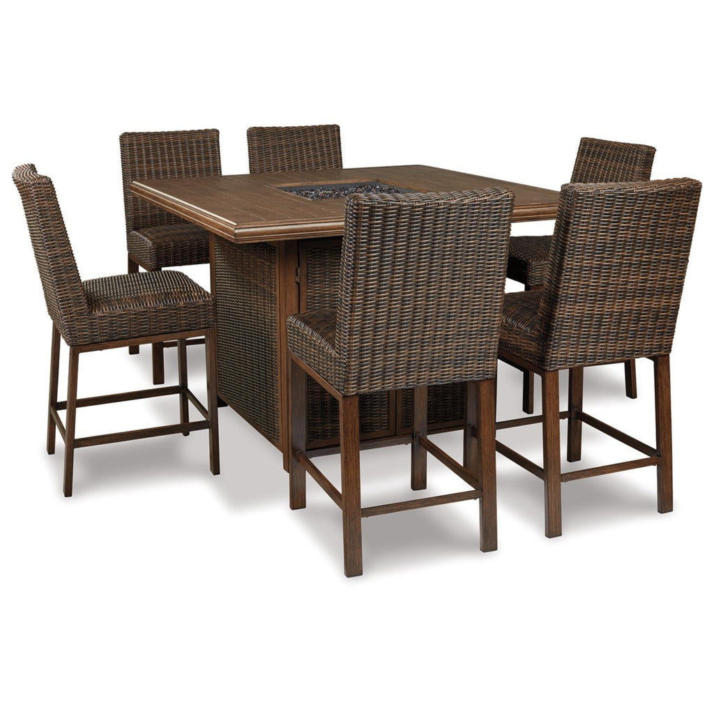 Signature Design by Ashley Paradise Trail P750-665 Square Bar Table with Fire Pit