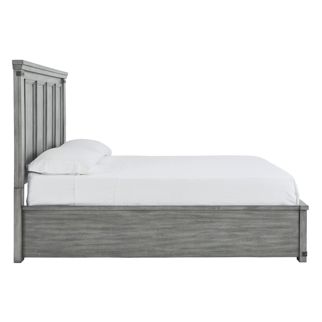 • Includes queen panel headboard, storage footboard and rails with roll slats