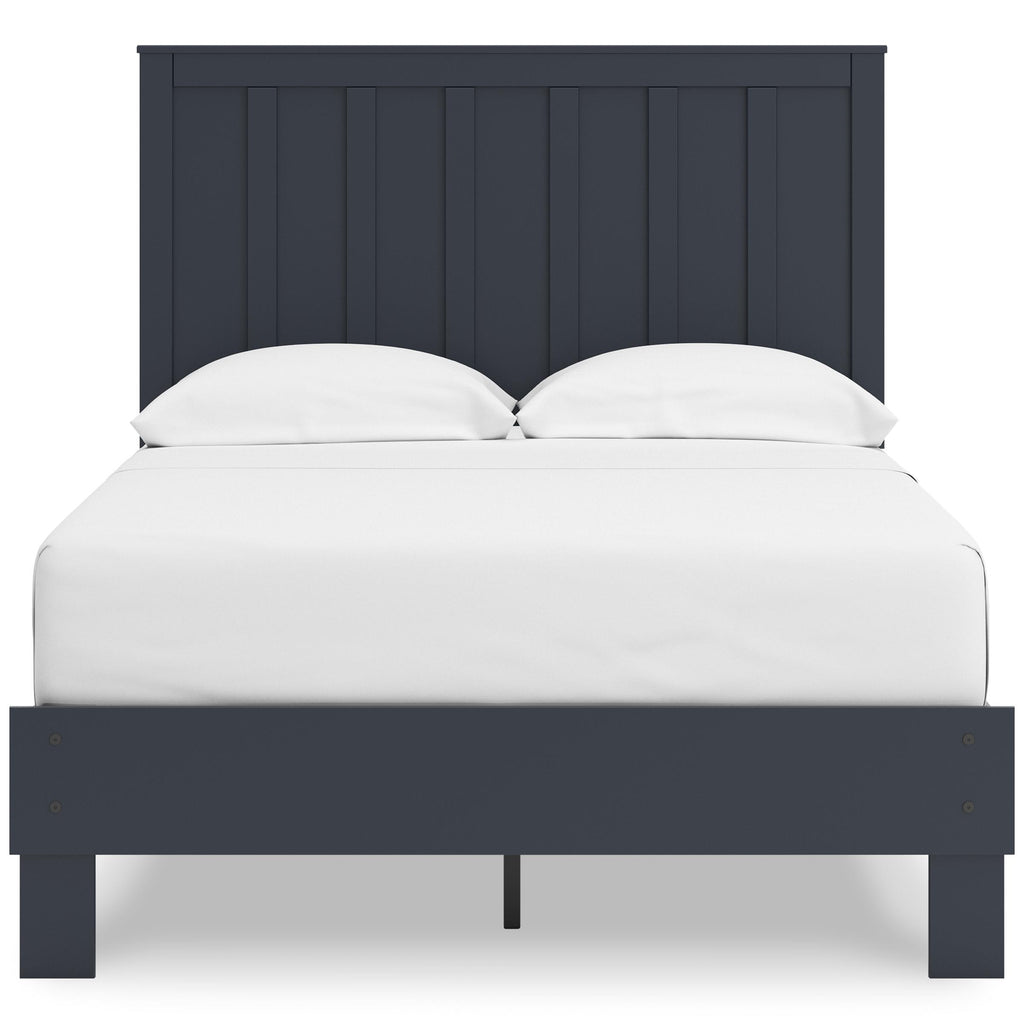 • Includes panel headboard and platform bed (footboard, rails and platform)
